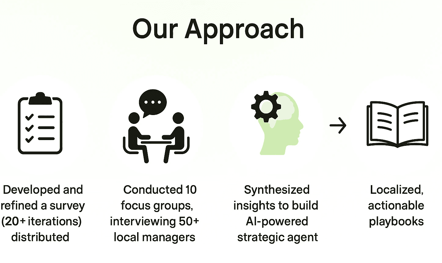 Synthesized insights to build an AI-powered strategic agent capable of combining industry data, employee feedback, regulatory requirements, and linguistic nuances into localized, actionable playbooks for each market.