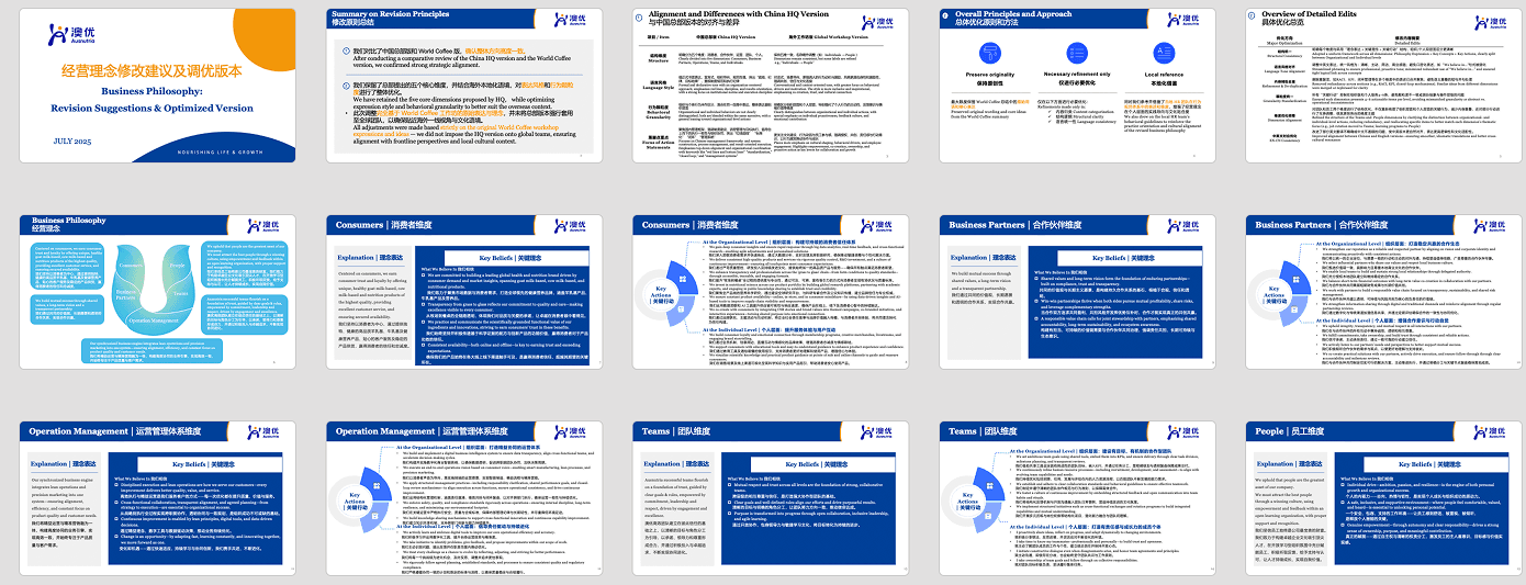 In early 2025, Kanta expanded into strategic consulting by integrating industry expertise with customized AI solutions. Our first major opportunity arose with Ausnutria Dairy, a subsidiary of Yili Group, which was preparing its first global strategy upgrade since COVID-19. Initially framed as a “post-pandemic recovery” initiative, the project soon revealed a deeper challenge: long-standing misalignment between China HQ and regional teams in the Netherlands, Germany, and Southeast Asia.